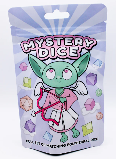 Each Mystery Dice set comes with a matching set of seven resin polyhedral dice (d4, d6, d8, 2d10, d12 & d20)